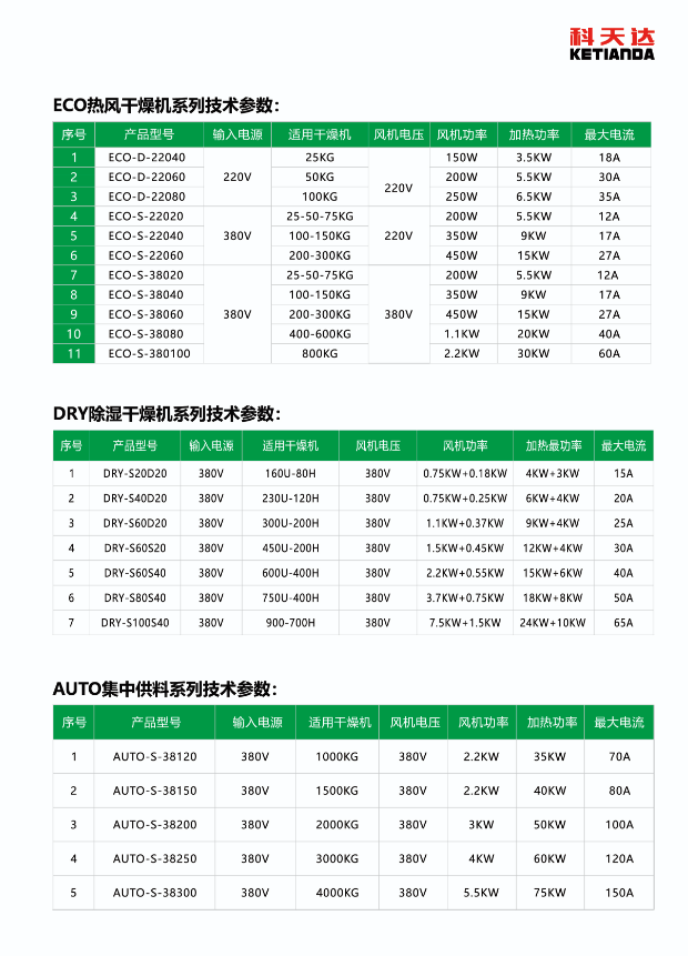 溫控范圍:根據(jù)物料干燥溫度需求選擇(如塑料干燥通常需 80℃-150℃,化工物料可能需 200℃以上,需確認(rèn)電箱支持的**溫控值);