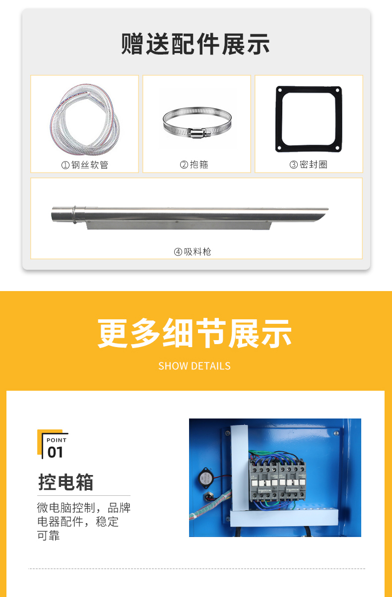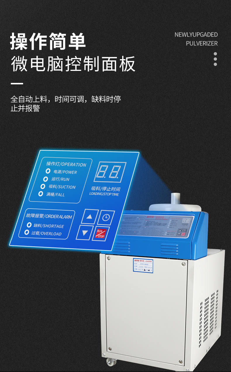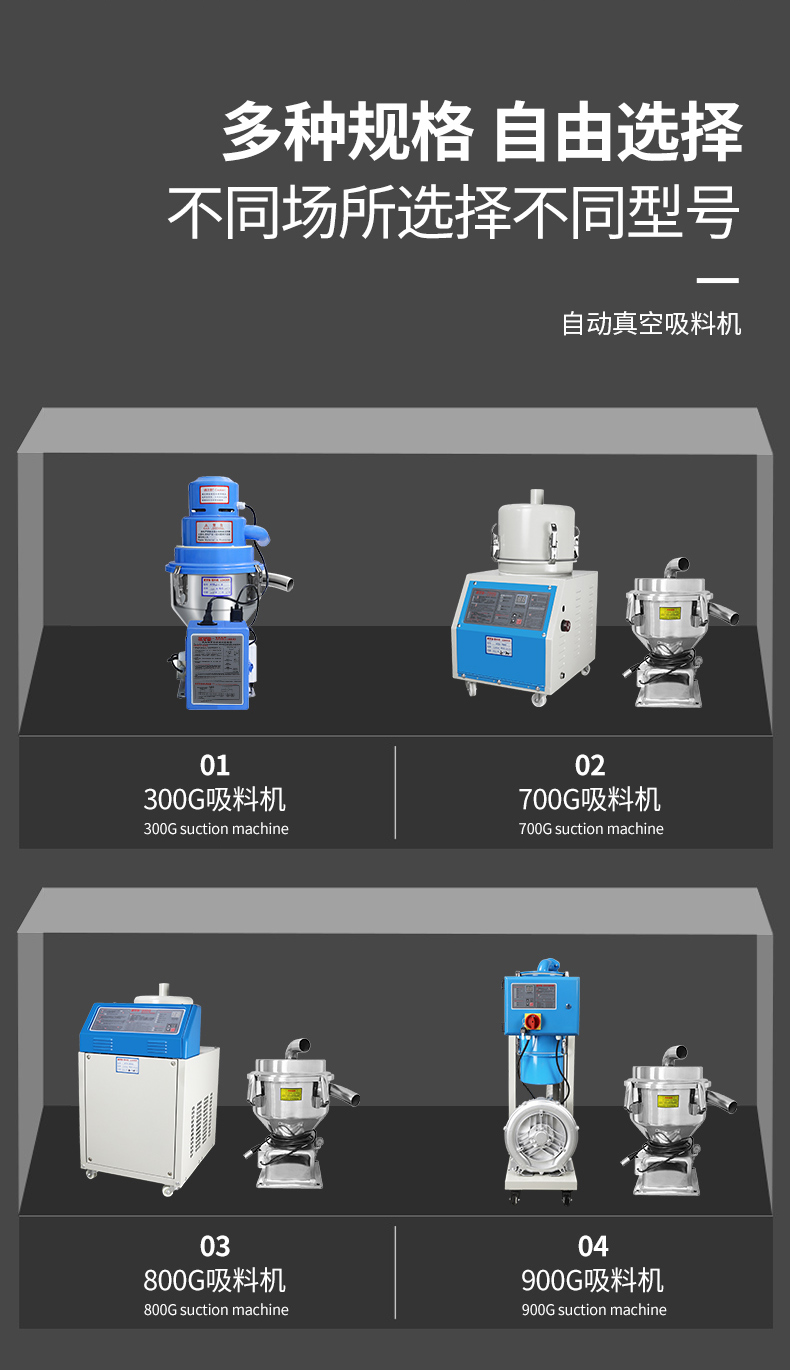 采用高速整流馬達,體積小、吸力強,適合新料輸送;