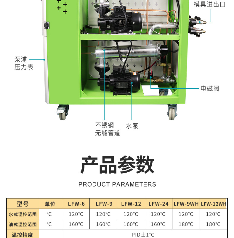 雙溫一體油式模溫機的應(yīng)用優(yōu)勢: